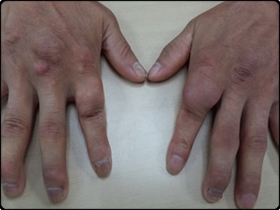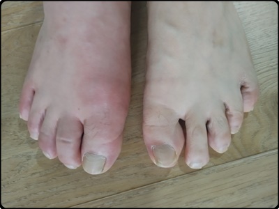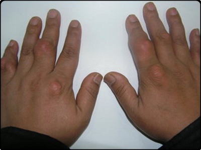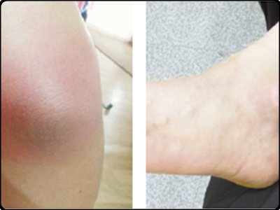 둘째, 손가락 발가락 관절 부위가 부풀어 오르는 증상